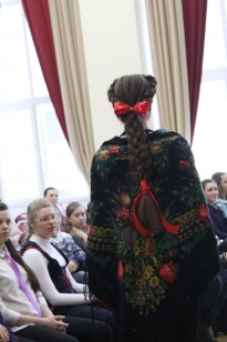 Мастер увлекательно рассказал о православных традициях и их влиянии на моду в прошлые века. Оказывается, по прическе и головному убору безошибочно можно было определить возраст и семейное положение женщины.