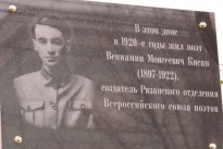Вениамин Моисеевич Кисин (1897-1922) – создатель Рязанского отделения Всероссийского союза поэтов, организатор и руководитель поэтической секции Дома искусств в Рязани, автор «Декларации люминизма». Стараниями поэта было издано шесть коллективных сборников стихов рязанских и московских поэтов, с которыми он был лично знаком. Это Борис Пастернак, Рюрик Ивнев, Сергей Есенин и другие.
