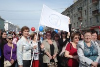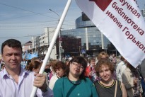 В огромной колонне участников праздничной демонстрации значительное место заняли работники культуры региона и среди них – сотрудники областной библиотеки имени Горького.