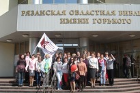 Флаги с символикой библиотеки, большой транспарант «Время читать!», цветы, улыбки, песни – все это сопровождало библиотекарей во время прохождения по улицам города и создало весенний, боевой настрой на продолжение активной работы по продвижению книги, чтения, развитию библиотеки как крупного научного, информационного, образовательного, методического центра, центра культурного притяжения, места просвещенного досуга.