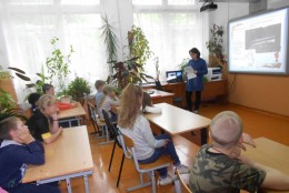 Библиотекарь села Елино Захаровского района Наталья Калинина посетила детский лагерь в Захаровской средней школе № 2 и провела там видеолекторий по теме «Соловецкие юнги на защите Отечества».