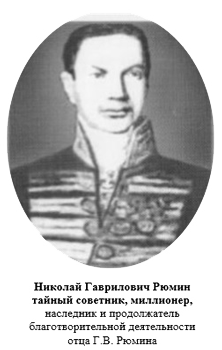 Газета «Рязанские губернские ведомости» регулярно печатала списки тех, кто жертвовал деньги и дарил книги библиотеке. В газете сообщалось, что почетный попечитель рязанской гимназии, действительный статский советник Николай Гаврилович Рюмин (1793–1870) внес значительные пожертвования для будущей библиотеки — 1000 руб. серебром. Эти деньги и содействие директора училищ дали возможность приобрести в 1853 и 1854 годах все, что было лучшего в русской литературе.